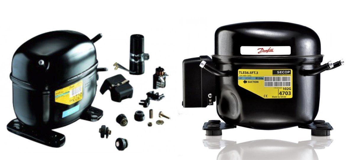 Los Compresores están diseñados para comprimir refrigerante en fase de gas, en el mercado encontramos compresores que trabajan con R22 R404 R134 R507 R407 R410 según la temperatura y aplicación deseada, En las marcas mas reconocidas como Copeland, Danfoss, Tecumseh, Bitzer, Trane, Embraco Aspera, Lg, Gmcc Toshiba, Carlyle, Bristol, Sanyo, Maneurop, Performer Tech, Reciprocante Scroll Tandem Discus Semihermeticos...
